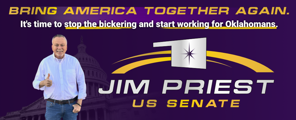 About Jim Priest Jim Priest is a lawyer, ordained minister, nonprofit leader, and lifelong problem solver who believes public service should be about people, not politics. A Democrat from Oklahoma, Jim is running for the United States Senate to bring practical leadership, ethical judgment, and a servant’s heart to Washington.